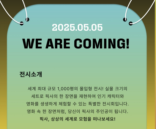- 굿즈샵 운영: 픽사 정품 굿즈 구매 가능 (현장 구매)