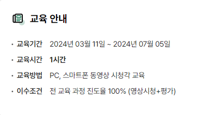연차별로 집합교육인지, 사이버 교육인지가 상이한데요. 집합교육과 사이버교육의 교육일정 확인 방법과 변경방법에 대해 알려드리겠습니다.