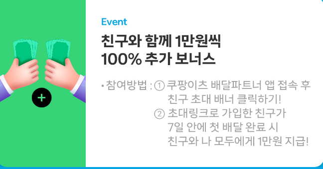 • 초창기 미션은 무조건 할 것 (안전교육 이수 2만원, 신규가입 초대코드 1만 원, 5건 배달 시 2만 원)